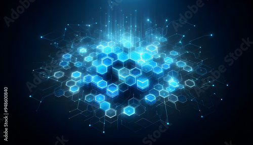 Blue neon hexagonal abstract background