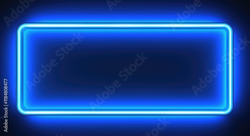 Blue Neon Light Frame. Stylish Modern Background Illuminated by Electronic Light, Suitable for Cinema, Cafes. Realistic Rectangle Element