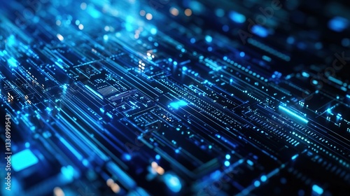 blue neon light in other dimension, abstract background futuristic technology theme