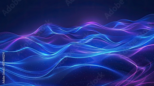 Blue neon soft waves background, creating a serene and elegant atmosphere in digital art