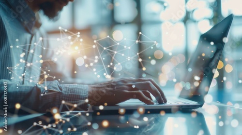 Blue Network Connection Laptop Businessman - Digital Technology Concept