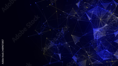 Blue network connection structure. Digital background with dots and lines. Big data visualization. 3D rendering.