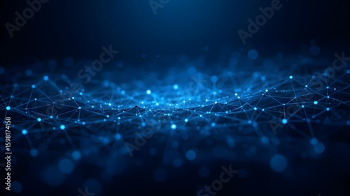 Blue network of connected dots and lines conveys technology and innovation concepts