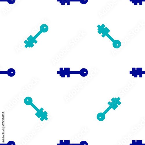Blue Old key icon isolated seamless pattern on white background. Vector Illustration.