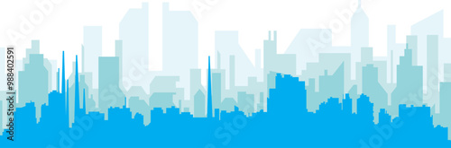Blue panoramic city skyline poster with bluish misty transparent background buildings of MARACAIBO, VENEZUELA