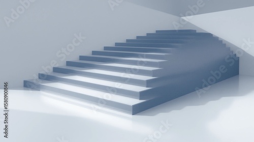 Blue pedestal of stairs or podium stand isolated on white background with business growth concept. Modern blue ladder display. 3D rendering