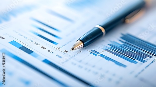 Blue Pen Resting on a Sheet of Paper with Financial Charts