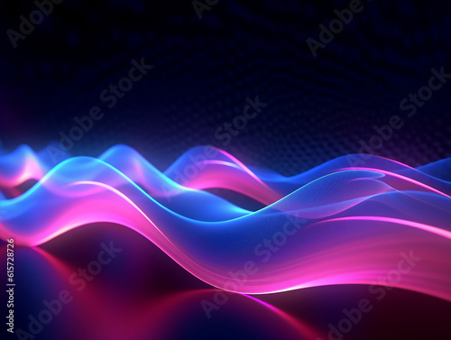Blue pink glow waves, in the style of dotted, 3d space, abstract blue lights, streamlined design, rhythmic lines, lens flare, stockphoto, backlight, no text on the picture