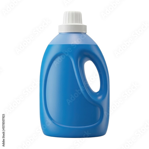 Blue plastic detergent container with handle isolated on white background for laundry packaging