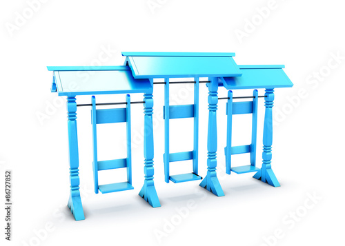 Blue plastic swing isolated on white background