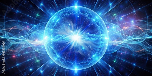 blue, power, cosmic, vibrant, space, plasma, force field, protection, stars, universe, illuminated, barrier, A mesmerizing blue glowing multidimensional plasma force field in space