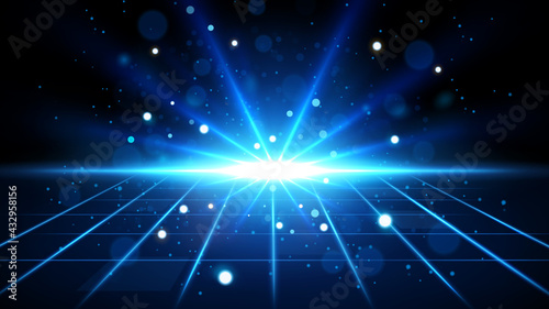 Blue Rays Rising on Horizon Background. Suitable for Product Advertising, Product Design, and Other. Vector Illustration