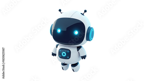 blue screen robot 3d, Cute AI Assistant Robot with Glossy Finish and Light Effects