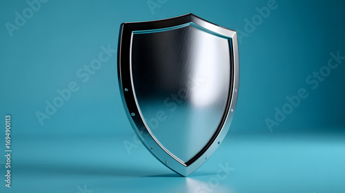 Blue shield symbolizing protection, security, and saety on a light blue backgrund. Ideal for cybersecuriy and insurance themes.