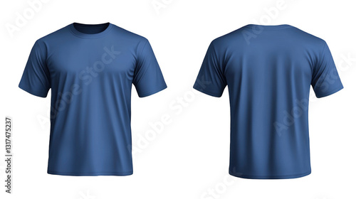 Blue Short Sleeve T-Shirt Front and Back View Mockup Design