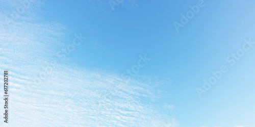 Blue sky background and white clouds soft focus, and copy space horizontal shape.