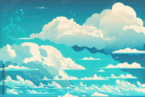 Blue sky with clouds. cloud gradient in the light white background of a summery blue sky. Clear, overcast, and sunny with a background of calm, bright winter air. A daytime, gloomy, brilliant cyan lan