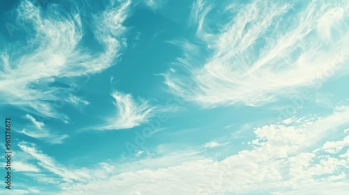 Blue Sky with White Wispy Clouds Natural Background Cloudy Weather