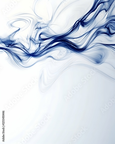 Blue smoke swirls on white, a flowing abstract design that could represent inspiration, air, or the unknown. Use background, texture