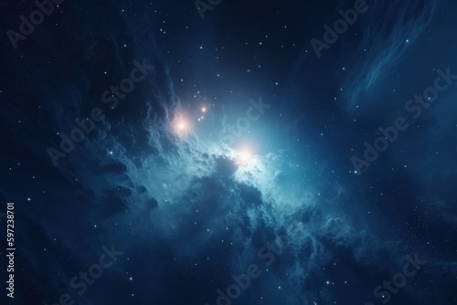 Blue space galaxy background, star clusters shining into deep space. night sky, glittering stars and nebulas - Generative AI - Generative