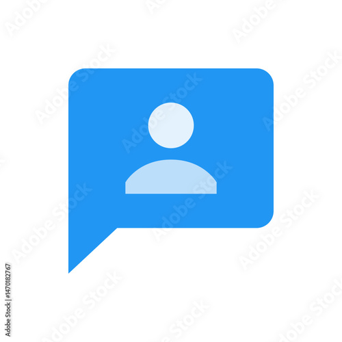 Blue speech bubble containing a simple white person icon representing communication and connection online