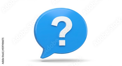 Blue speech bubble with a white question mark on a white background