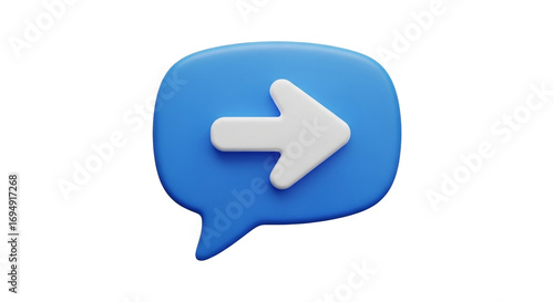 Blue speech bubble with bold white arrow symbolizing communication, forward navigation, messaging, modern technology, digital interaction, and connectivity