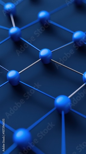 Blue spherical nodes connected by lines in a network structure on a dark background.