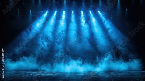 Blue stage lighting creates a dramatic atmosphere for performance and entertainment in a theater setting