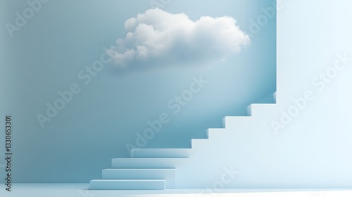 Blue Staircase Ascending Towards A Fluffy Cloud