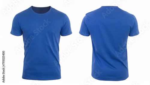 Blue t shirt front and back view, isolated on white background. Ready for your mock up design template