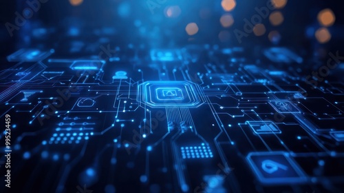 blue tech background with icons and blue wires