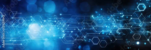 Blue technology background with white digital circuit lines and hexagons on a dark blue banner, a futuristic tech design for business or innovation concepts Generative AI