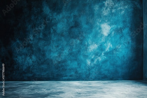 Blue textured wall background with concrete floor.