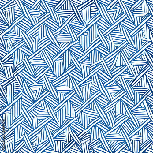 Blue Thin Line Abstract Shapes Seamless Pattern on White Background. Perfect for: Summer parties, art studios