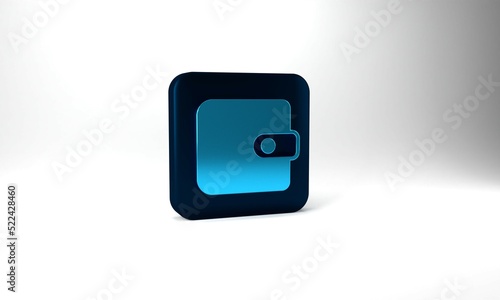 Blue Wallet icon isolated on grey background. Purse icon. Cash savings symbol. Blue square button. 3d illustration 3D render