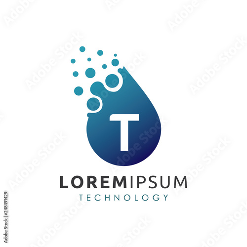 Blue Water Drop T Letter Logo