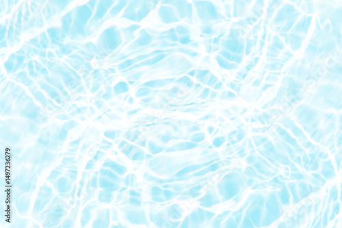 Blue water with ripples on the surface. Defocus blurred transparent blue colored clear calm water surface texture with splashes and bubbles. Water waves with shining pattern texture background.