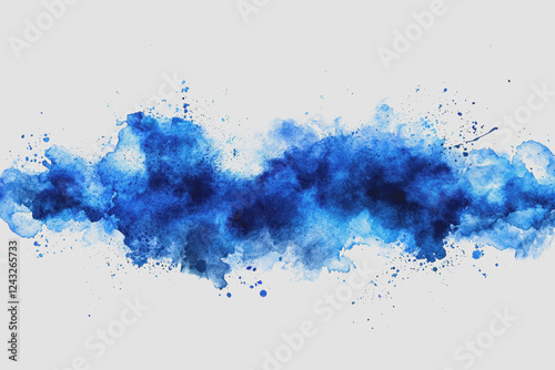 Blue watercolor paint splashes on a white background creating an artistic abstract design suitable for backgrounds and creative projects