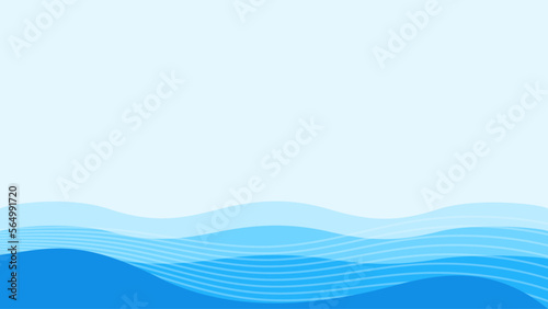 Blue wave, water wave, lines, blue sky background. Vector texture design poster banner abstract blue wallpaper background.