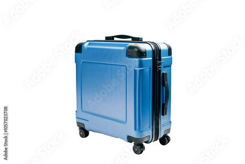 Blue wheeled suitcase with a sleek design, perfect for travelers seeking style and functionality.