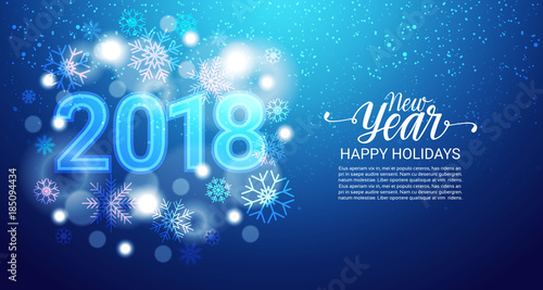 Blue Winter Holidays Background With Snowflakes, Bokeh Snow Falling New Year Concept Vector Illustration
