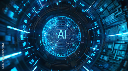 Blue Wireframe Hologram: Capturing the Essence of 'AI' and Artificial Intelligence in a Striking Digital Artwork