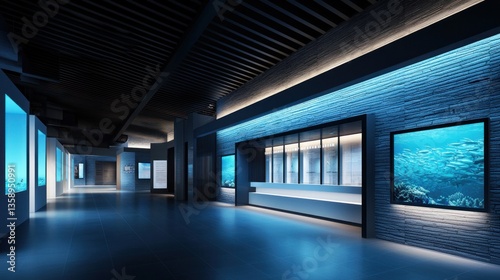 Blueprint drawing of a cultural building in modern gallery gigapixel quality underwater theme elegant design