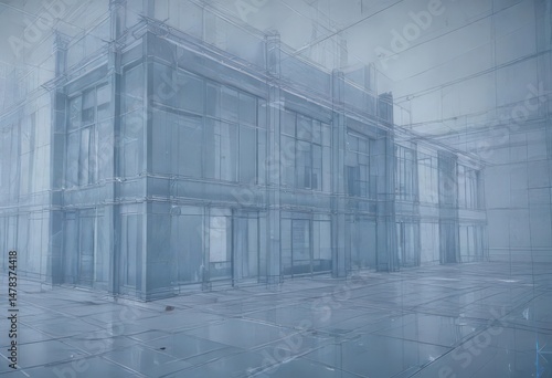 Blueprint overlay with faded blue photo effect, abstract architectural lines, vintage, blue