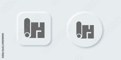 Blueprint solid icon in neomorphic design style. Draft signs vector illustration.