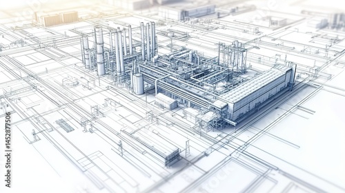 Blueprint-style industrial facility sketch with tanks and pipelines.