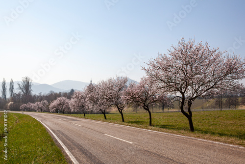 Blühende Mandelbaeume (Prunus dulcis), Deutsche Weinstrasse