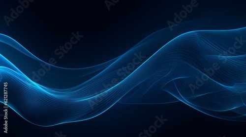 Bluish Illumination: Abstract Design with Subtle Gradients and Sinuous Lines on Dark Shaped Canvas Generative AI