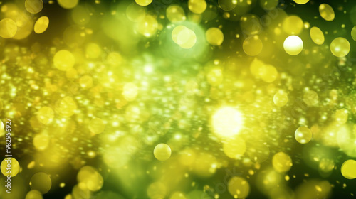 Blur bookeh gold lights or flashes on a vivid lime color background